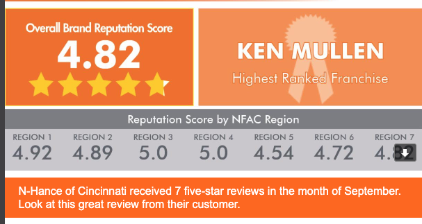 The process for asking for and getting more reviews is actually pretty simple. If you follow these steps I can promise you that you will get more reviews. Check out our client Ken Mullen, an N-Hance franchise owner in Cincinnati. He is almost always the highest ranked Franchise amongst his peers. If you don’t follow these steps, I can’t say what you will get – so be like Ken, just do it!
