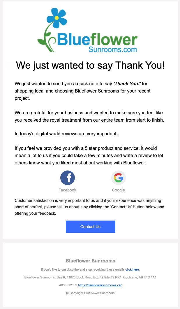 Mr/Mrs Customer, reviews are so important to us these days. If I send you an email with a link to our review site would you be able to take a couple minutes to write a few sentences to tell others what you liked most about doing business with us?