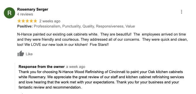 Brand Terms Used in Review Example Above: N-Hance, N-Hance Wood Refinishing of Cincinnati