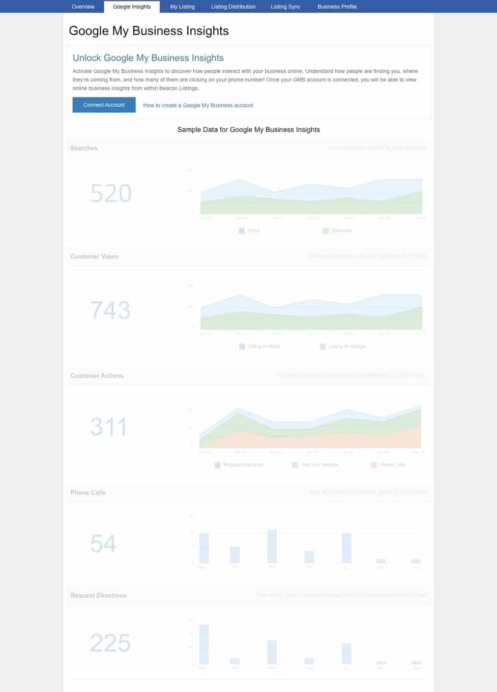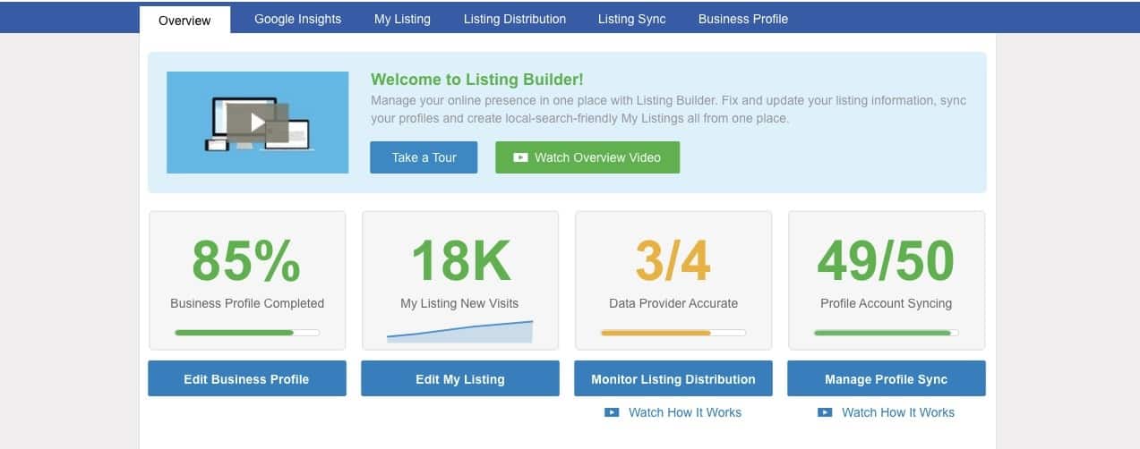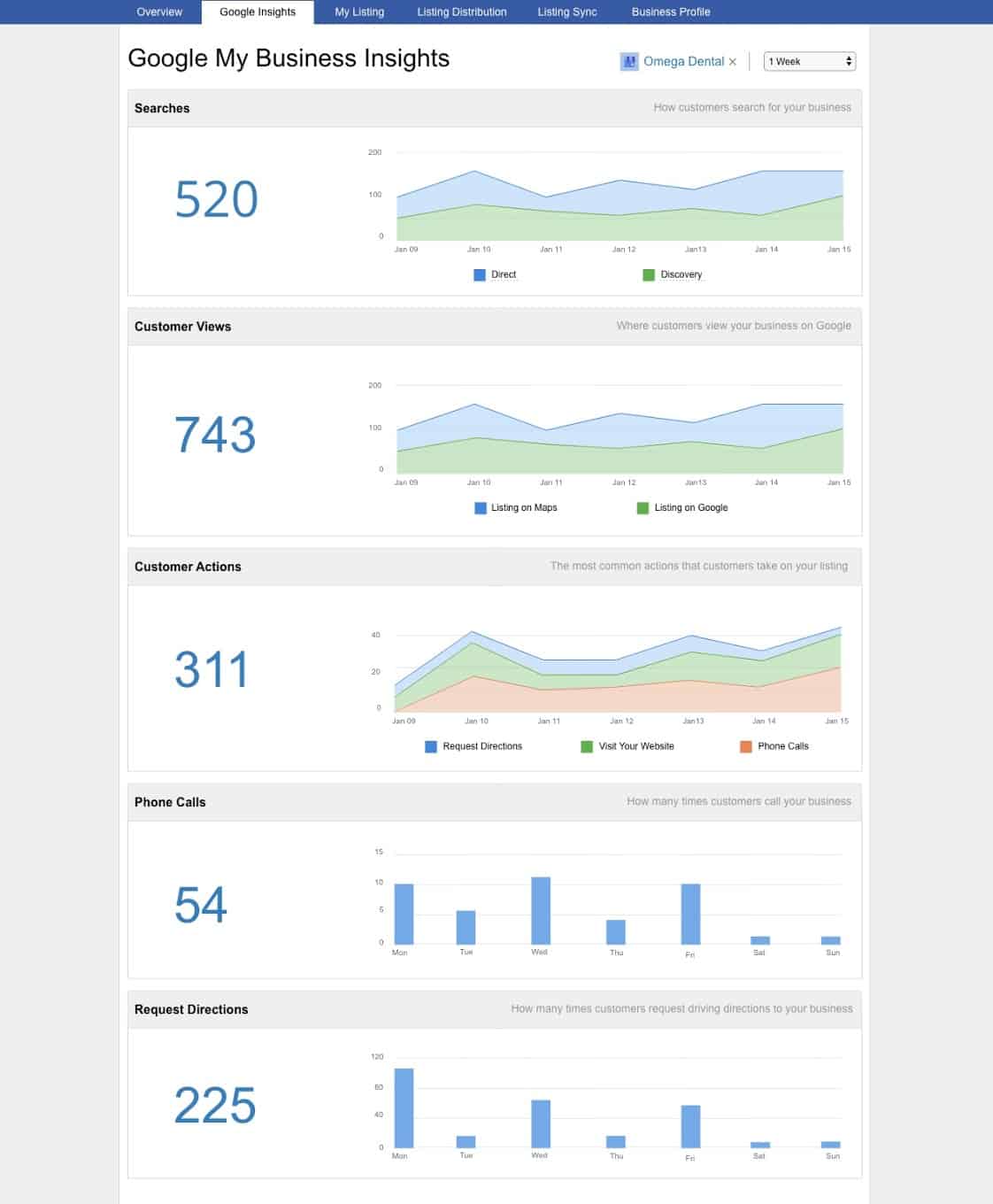 • Google My Business Insights: Understand how your business is performing on Google Search and Maps. Google Insights in Listing Builder provides a valuable glimpse into your customer’s activities.