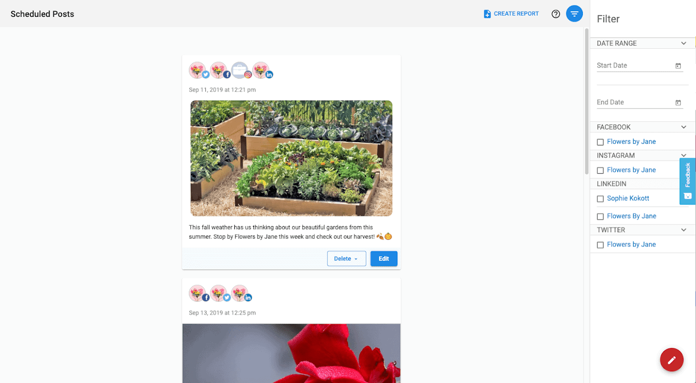 Facebook, Instagram, Twitter, Google My Business (Google Posts), and LinkedIn. From one place, business owners can publish content to multiple social sites with the push of a button, utilize in-line conversations so the context of interactions isn’t lost and schedule a calendar of posts.