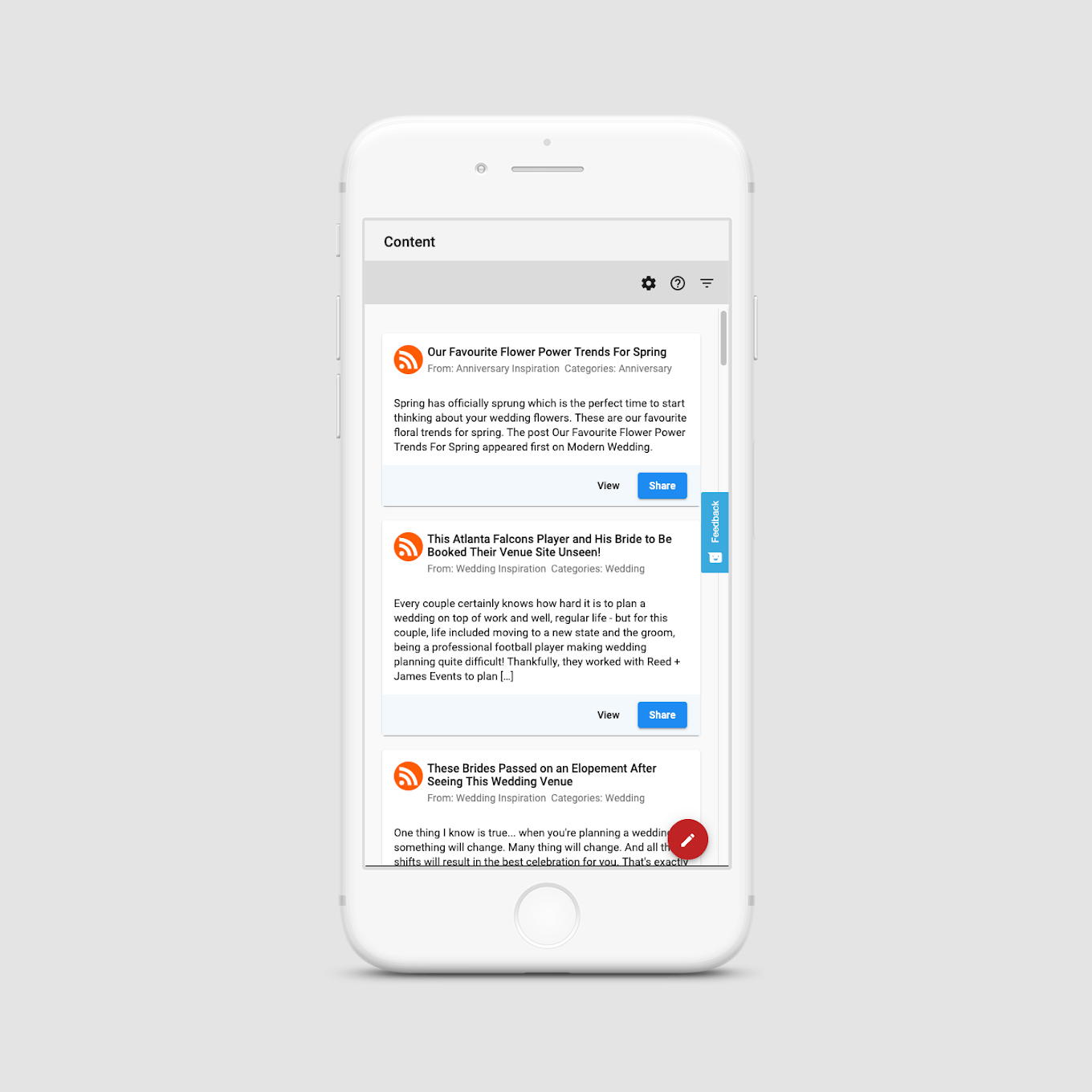 • Ready-to-post content library—Use your favourite RSS feeds to discover great content to use in your social media marketing