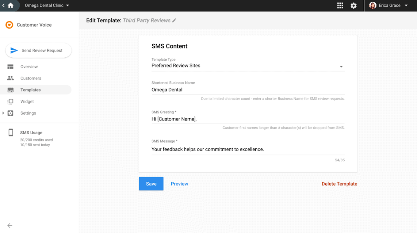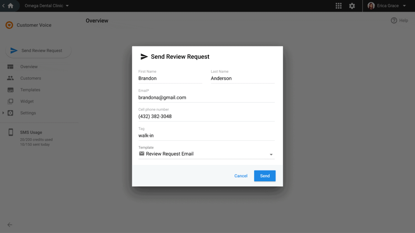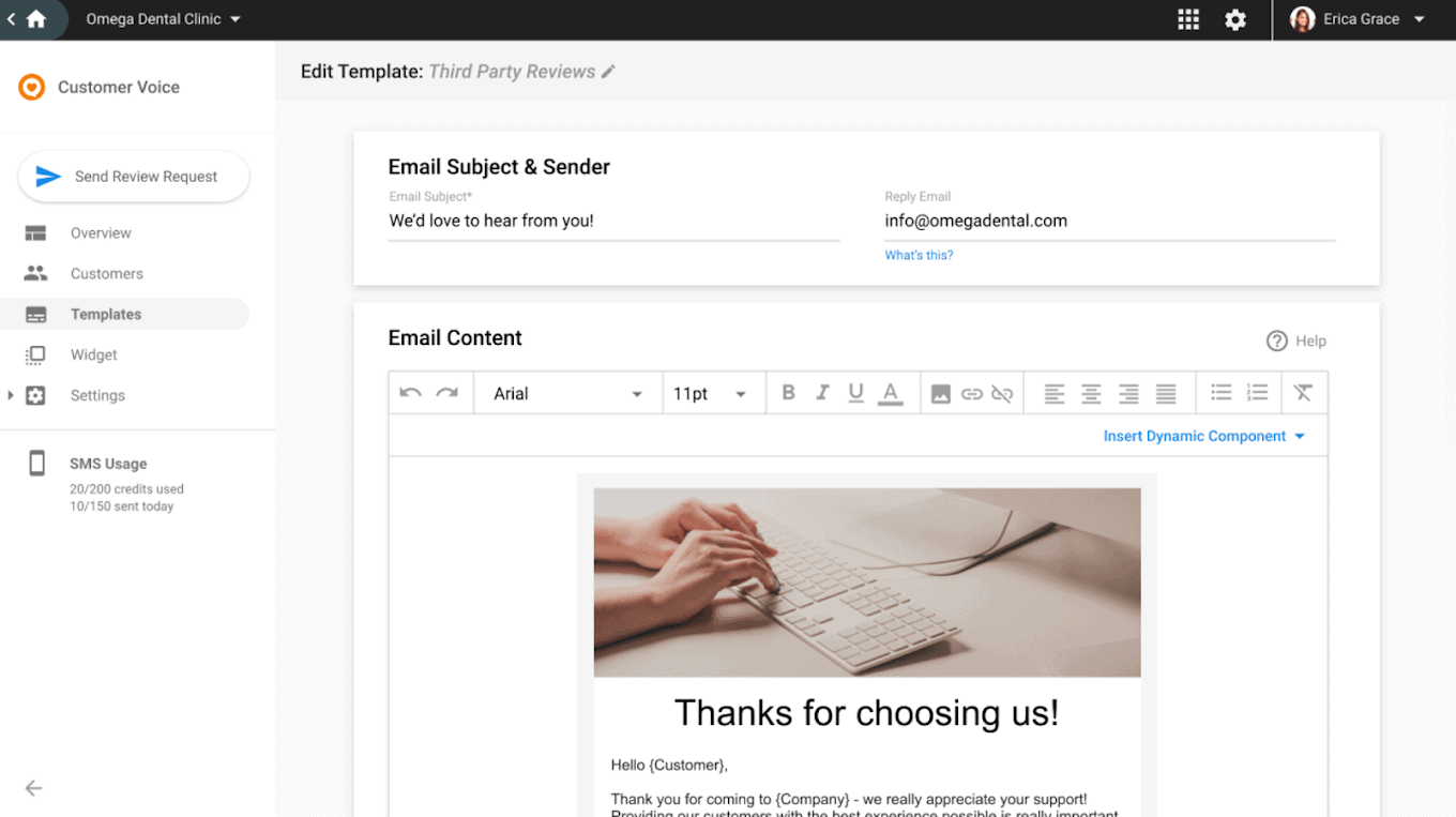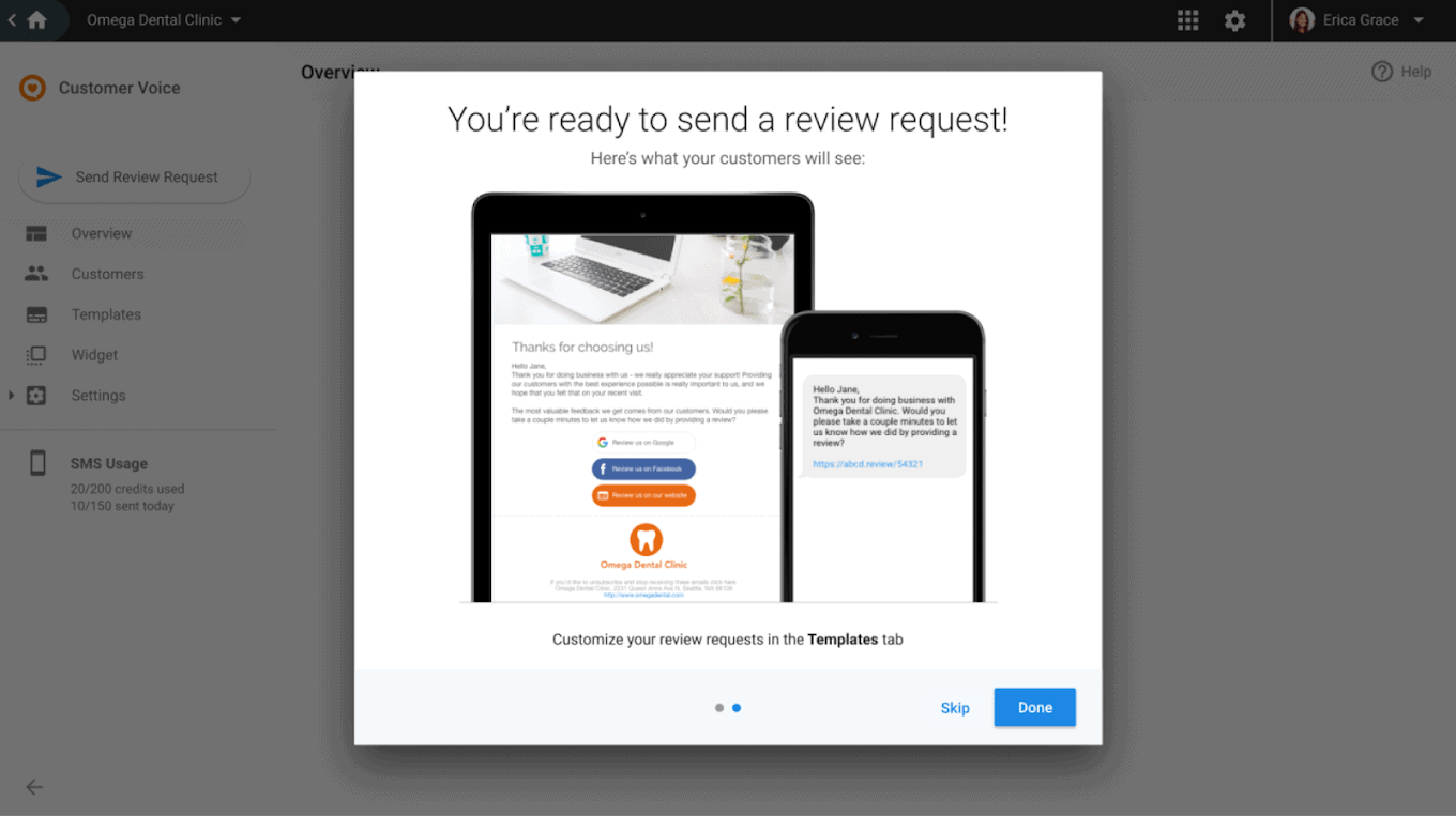 • Reach customers wherever they are: Customer Voice gives you the flexibility to request reviews on the medium that works best for your customers—either text message or email.