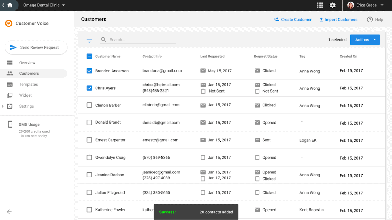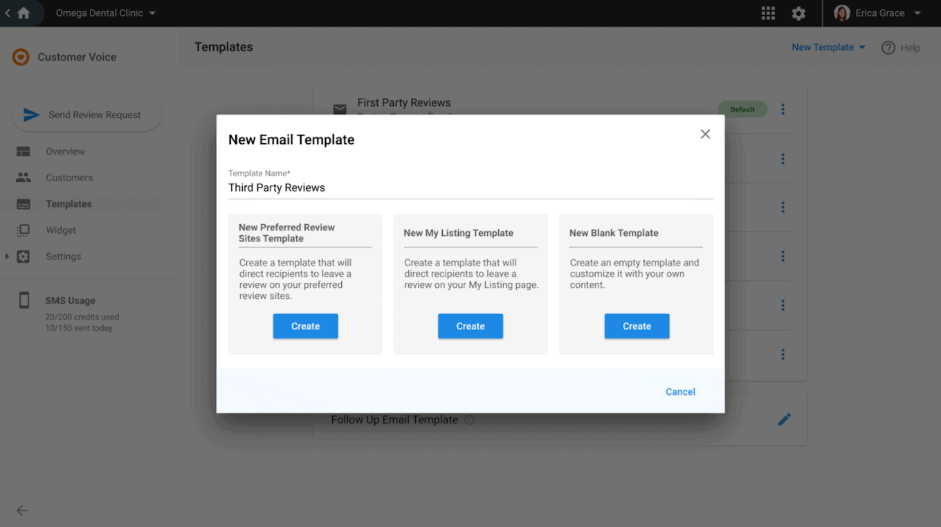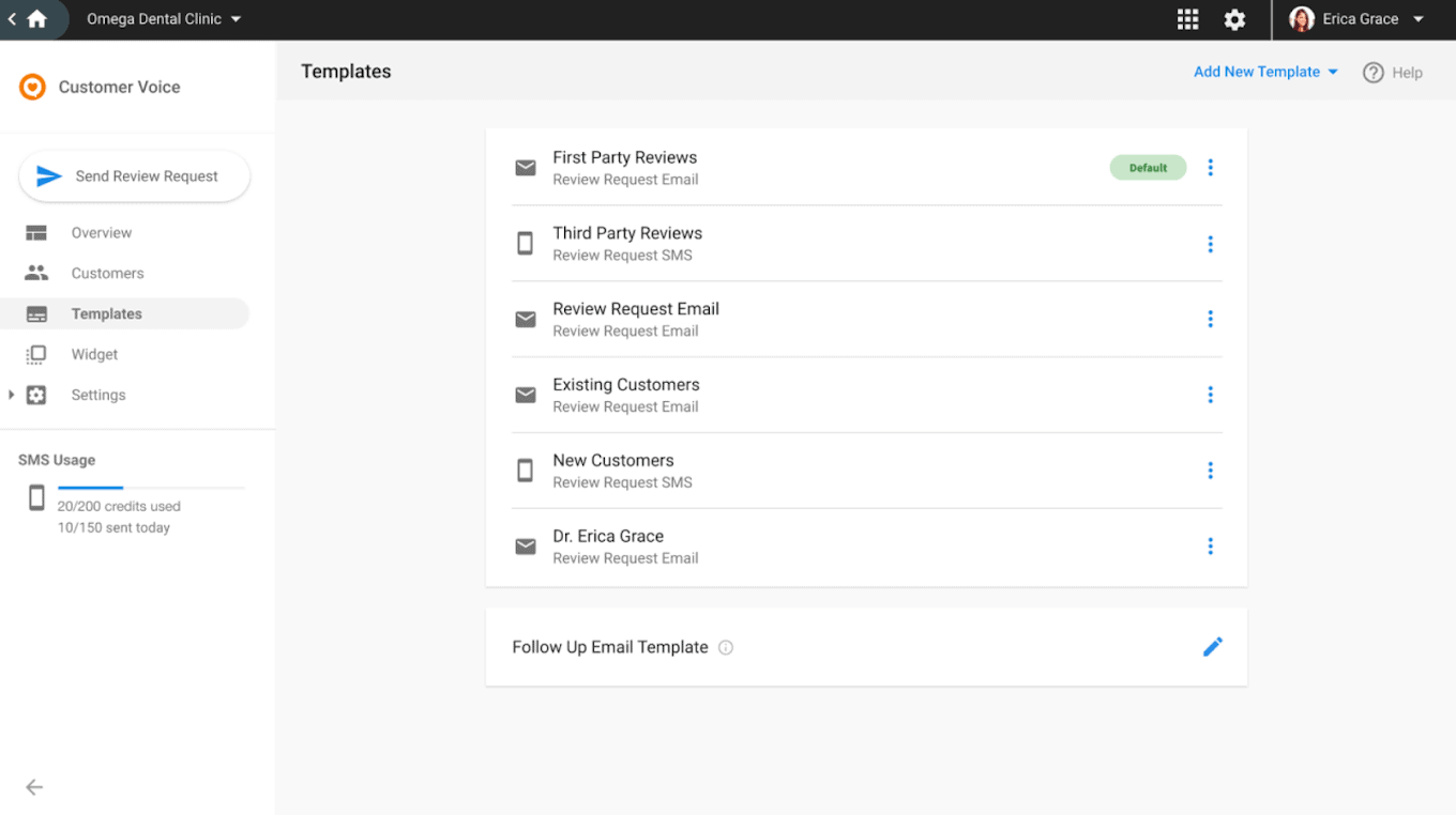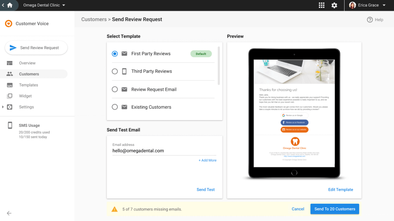 • Reach customers wherever they are: Customer Voice gives you the flexibility to request reviews on the medium that works best for your customers—either text message or email.