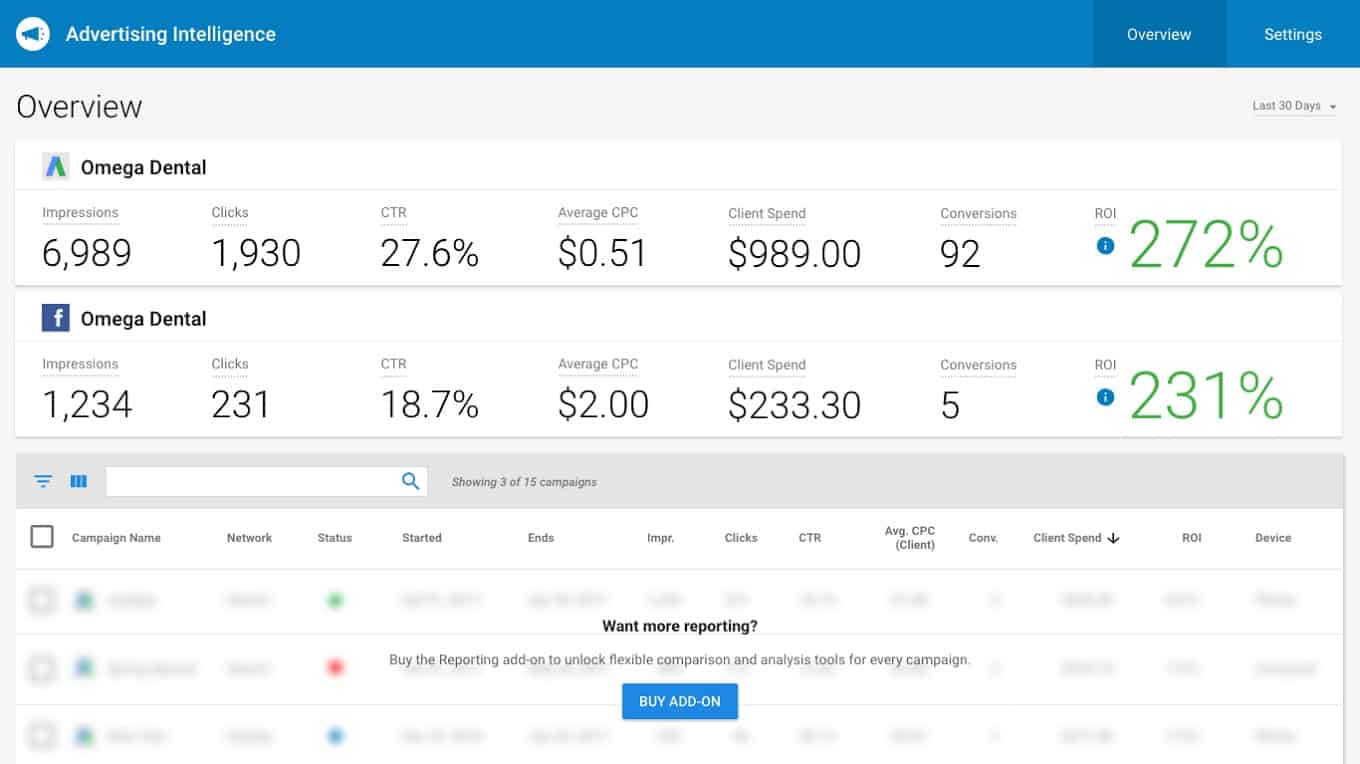 - The communication required to manage ads is tiresome and doesn’t scale. Throughout the lifecycle of campaign, countless emails and phone calls will have been exchanged. The back and forth of providing constant updates is no longer required with details at your fingertips.
