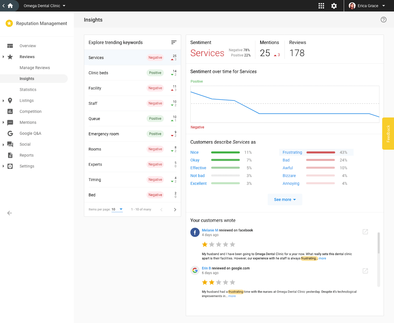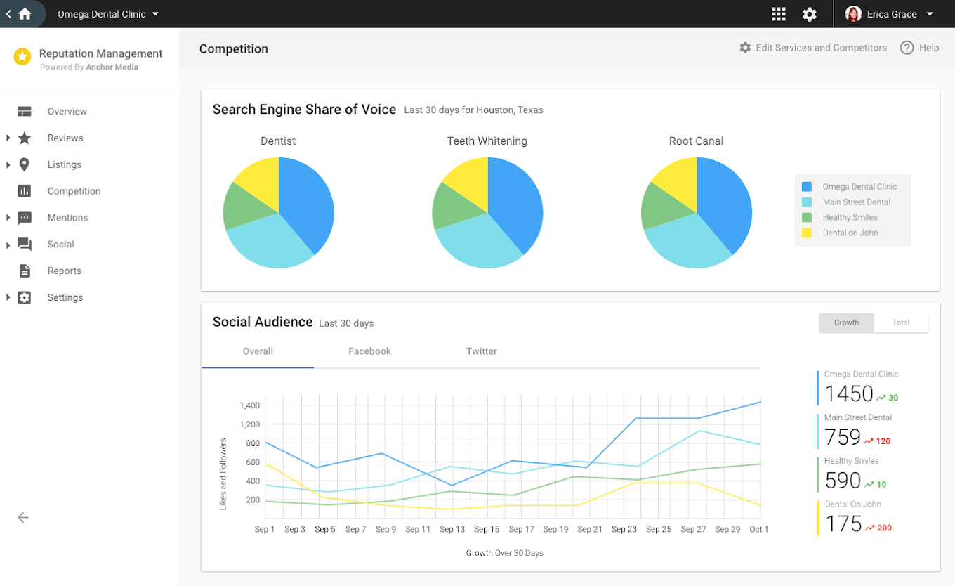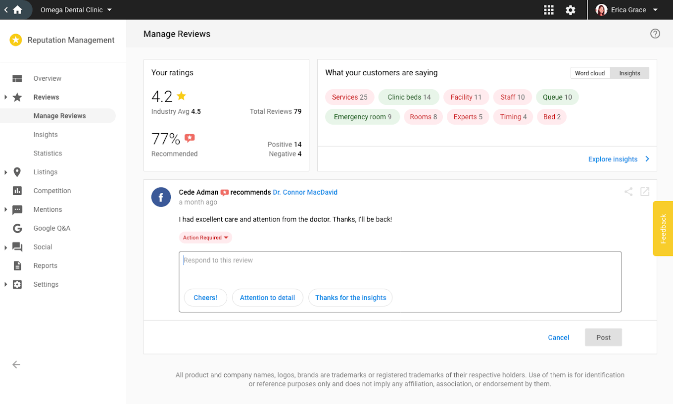 - Manage your online reputation from one place: Compile reviews from dozens of sites so you can easily see what’s being said about your business online. Plus, use competitive benchmarking to see how you stack up to the competition.